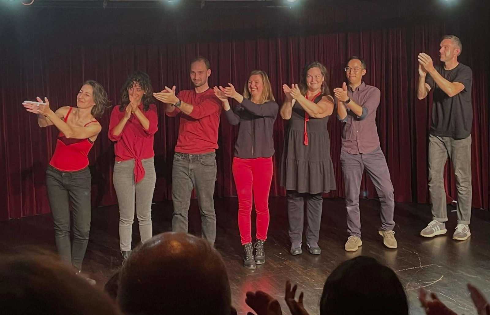 We are The Murderet, Geneva's English-speaking troupe devoted to murder mystery and long-form improv. Since 2017, we've been cooking up stories where comedy tangles with suspense, using a mix of playful creativity and storytelling. Along the way, we've also strayed into other formats, from fresh spins on long-form to immersive theatre, always chasing the fun of discovering what might happen next!